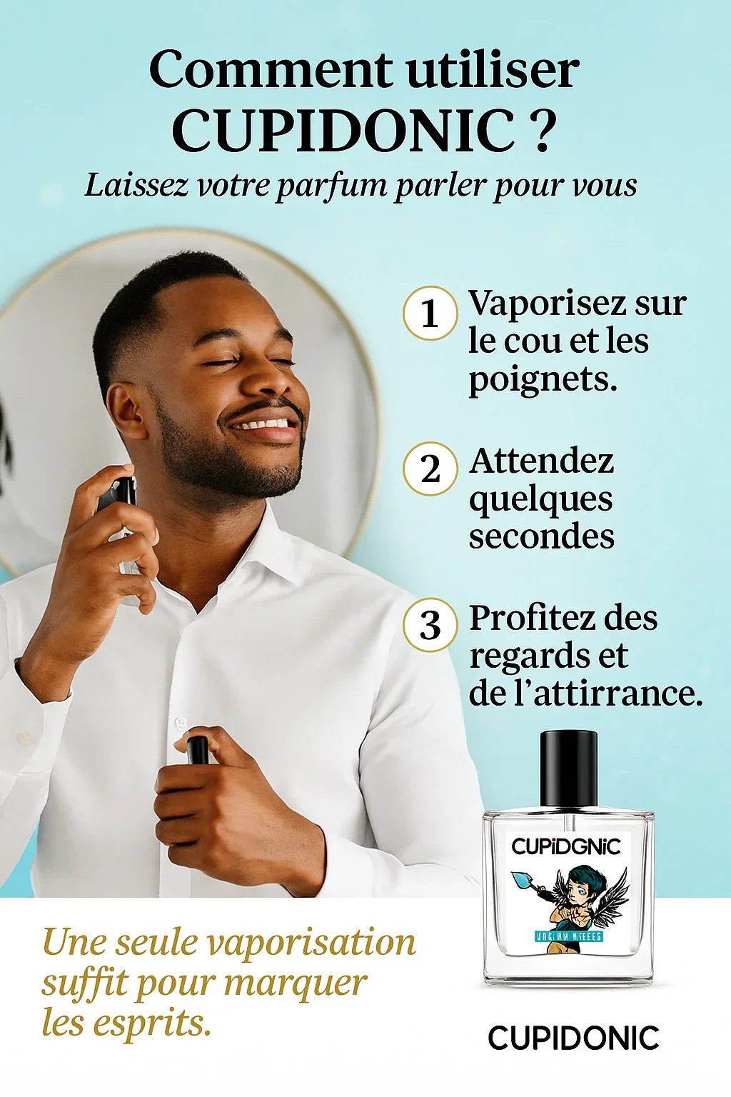 Choisir CUPIDONIC  , c’est opter pour un parfum qui attire sans effort. Grâce à ses phéromones uniques, il capte l’attention et suscite l’intérêt dès le premier contact.
